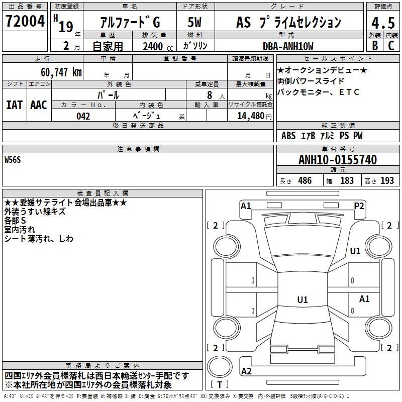 TOYOTA ALPHARD G - лот 72004