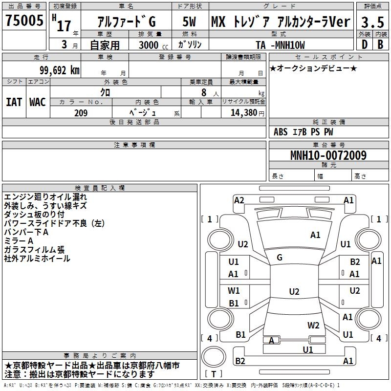 TOYOTA ALPHARD G - лот 75005