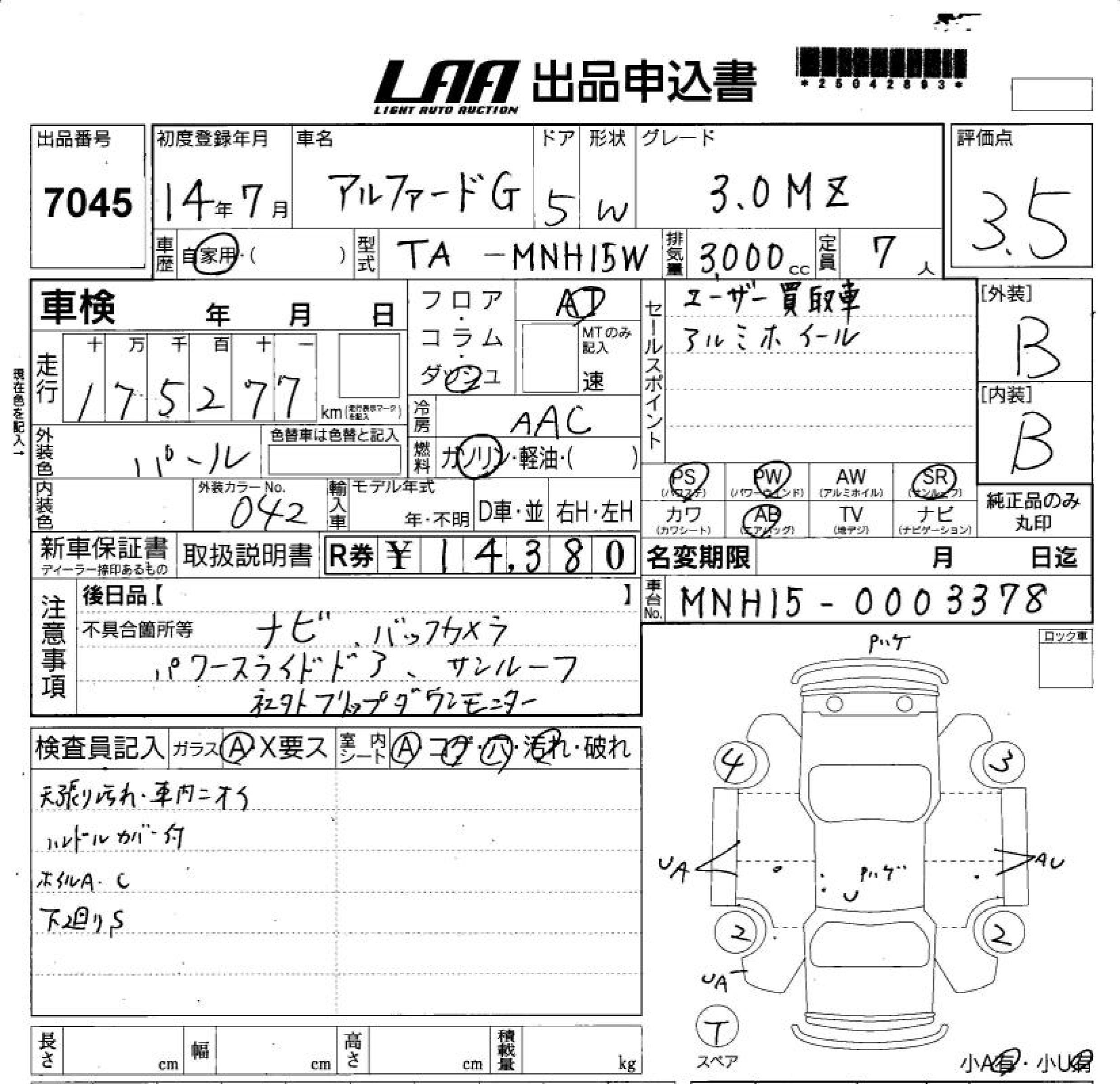TOYOTA ALPHARD G - лот 7045