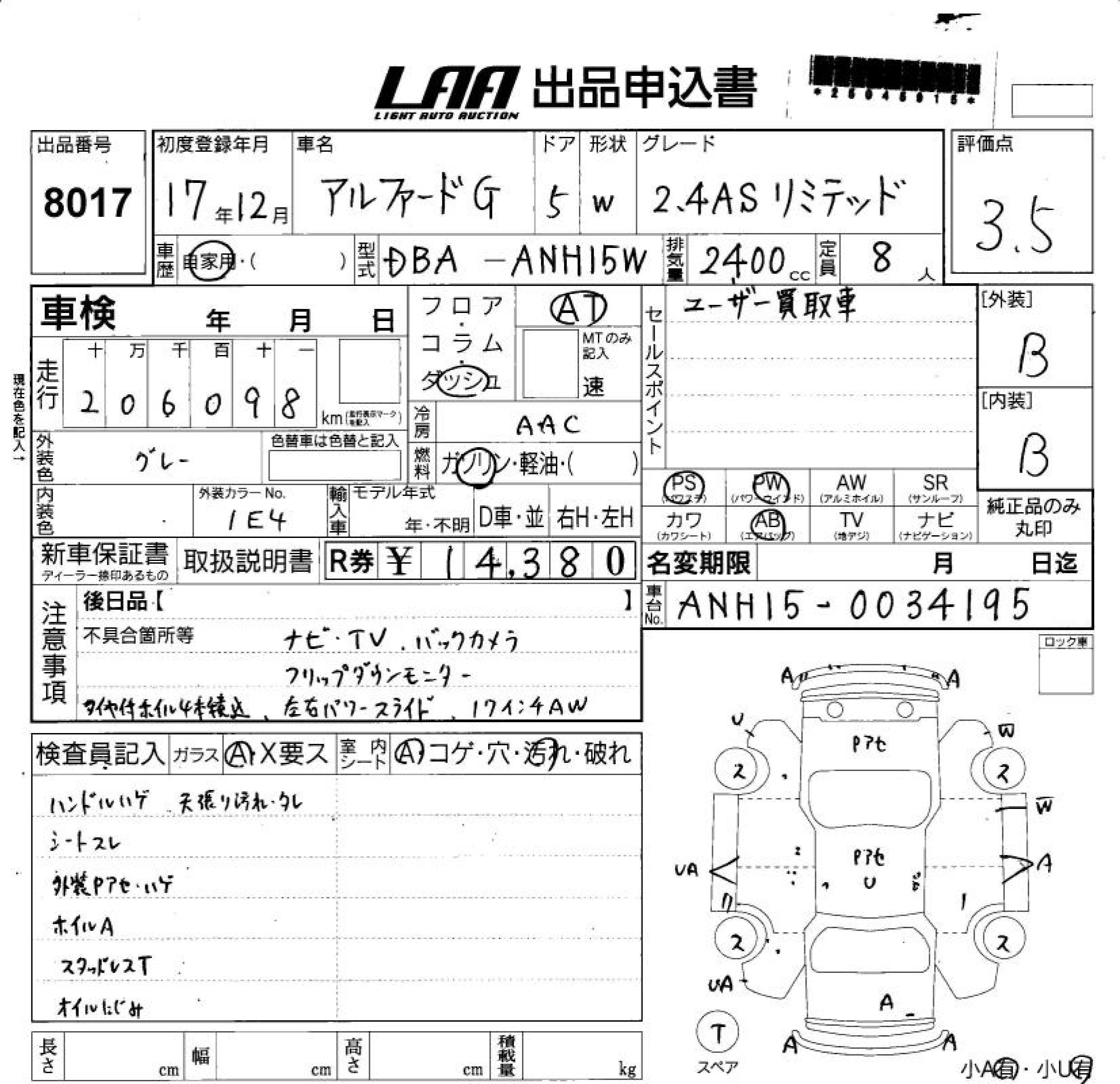 TOYOTA ALPHARD G - лот 8017