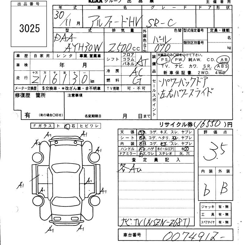 TOYOTA ALPHARD HYBRID - лот 3025