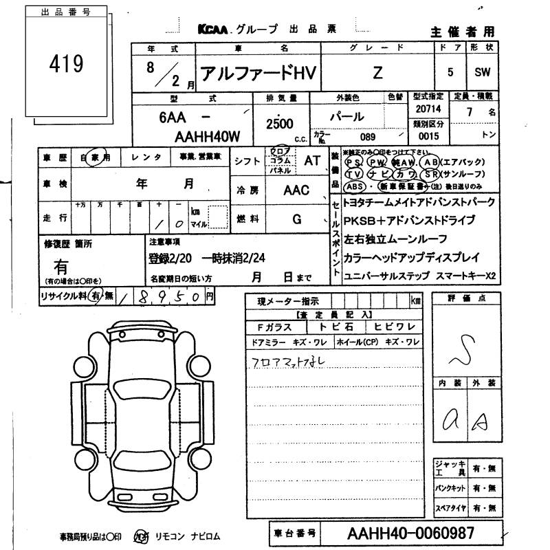 TOYOTA ALPHARD HYBRID - лот 419