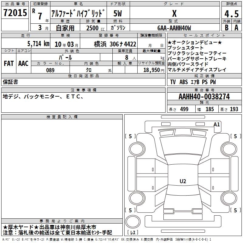 TOYOTA ALPHARD HYBRID - лот 72015