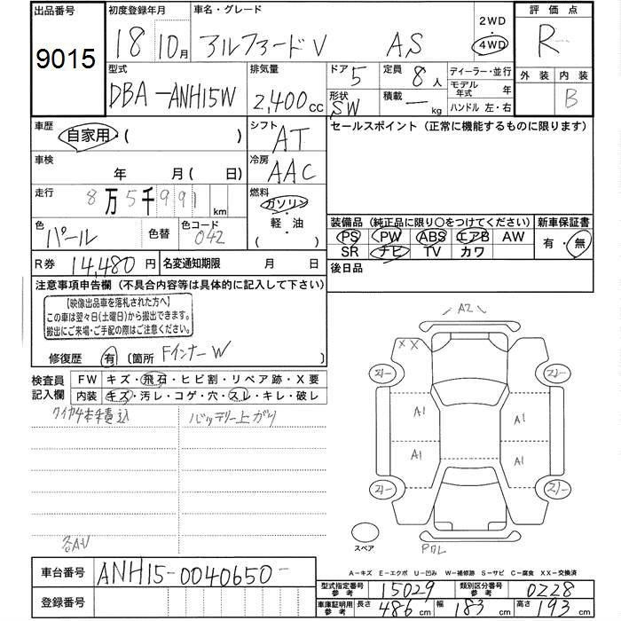 TOYOTA ALPHARD V - лот 9015