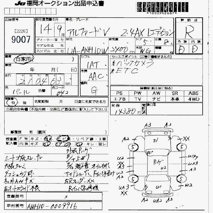 TOYOTA ALPHARD V - лот 9007