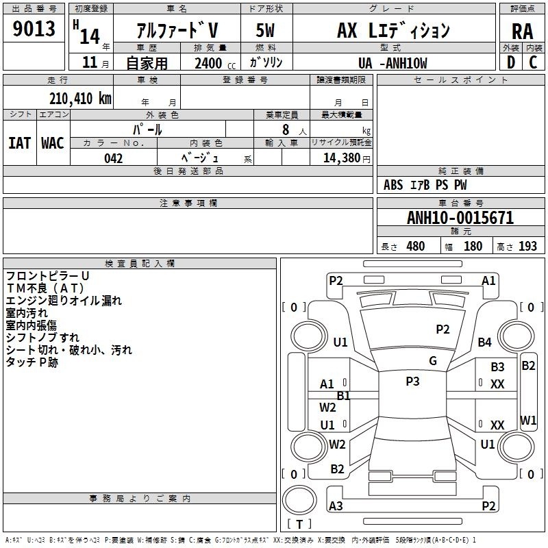TOYOTA ALPHARD V - лот 9013