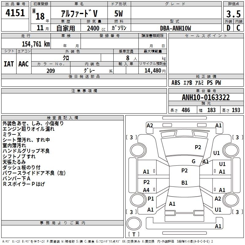 TOYOTA ALPHARD V - лот 4151