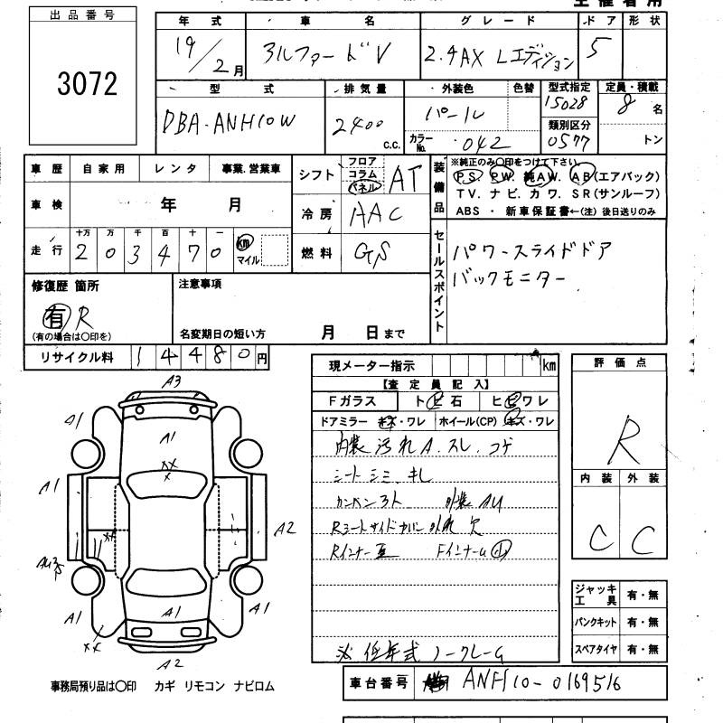 TOYOTA ALPHARD V - лот 3072