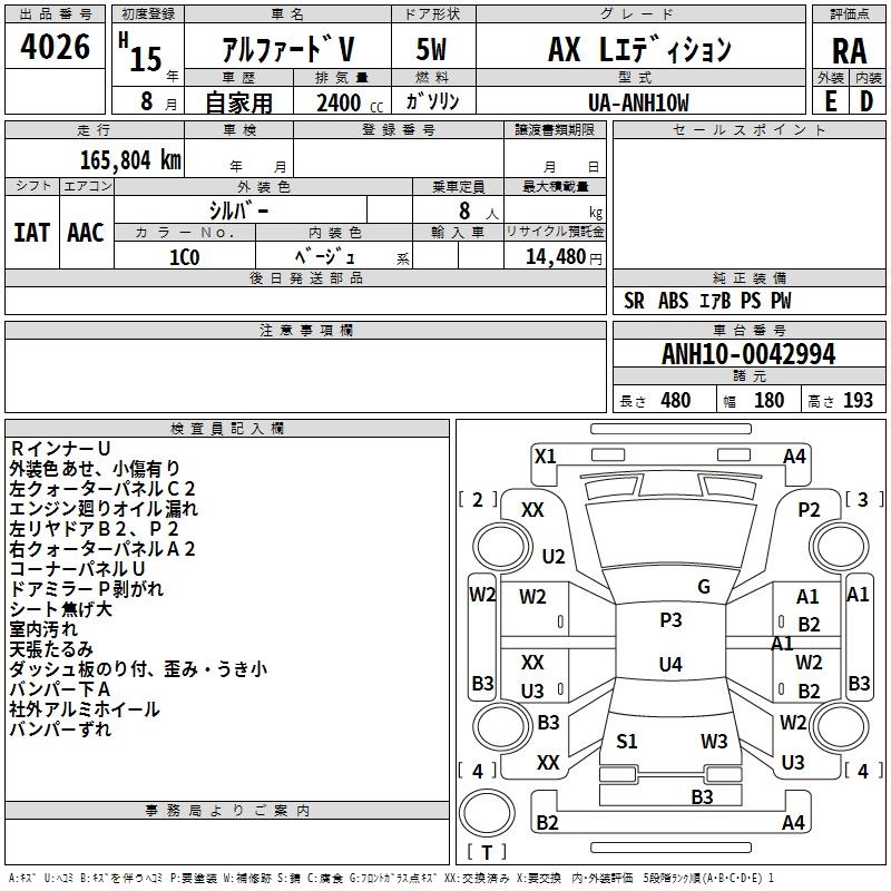 TOYOTA ALPHARD V - лот 4026