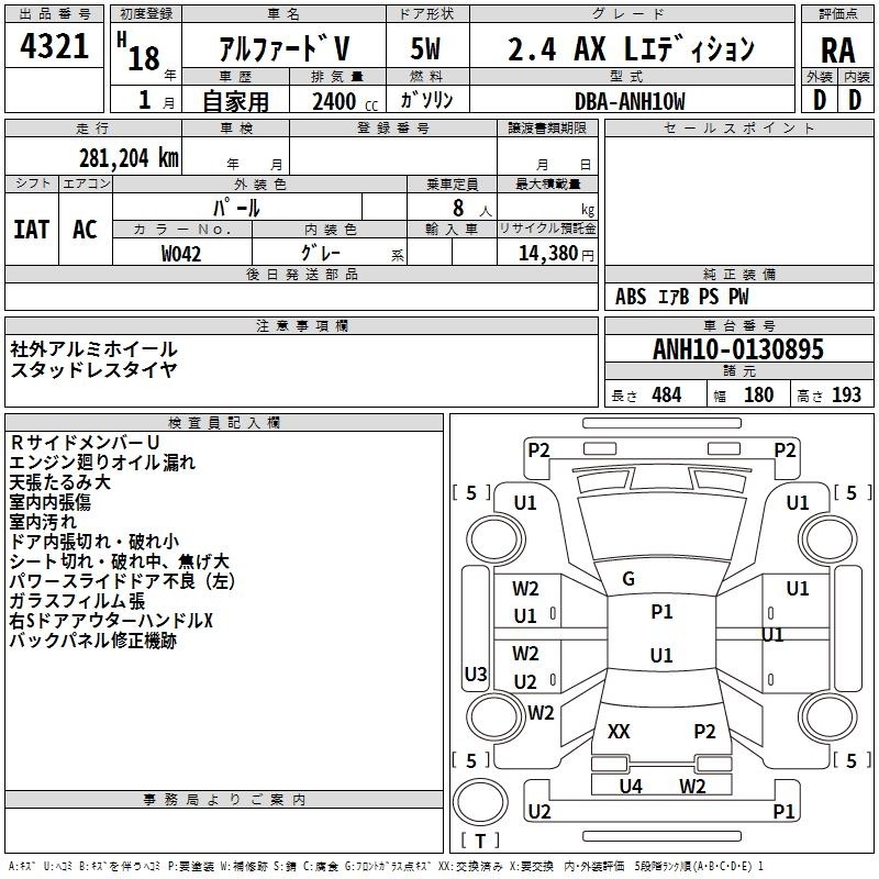 TOYOTA ALPHARD V - лот 4321