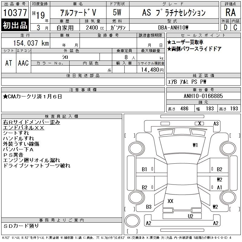 TOYOTA ALPHARD V - лот 10377