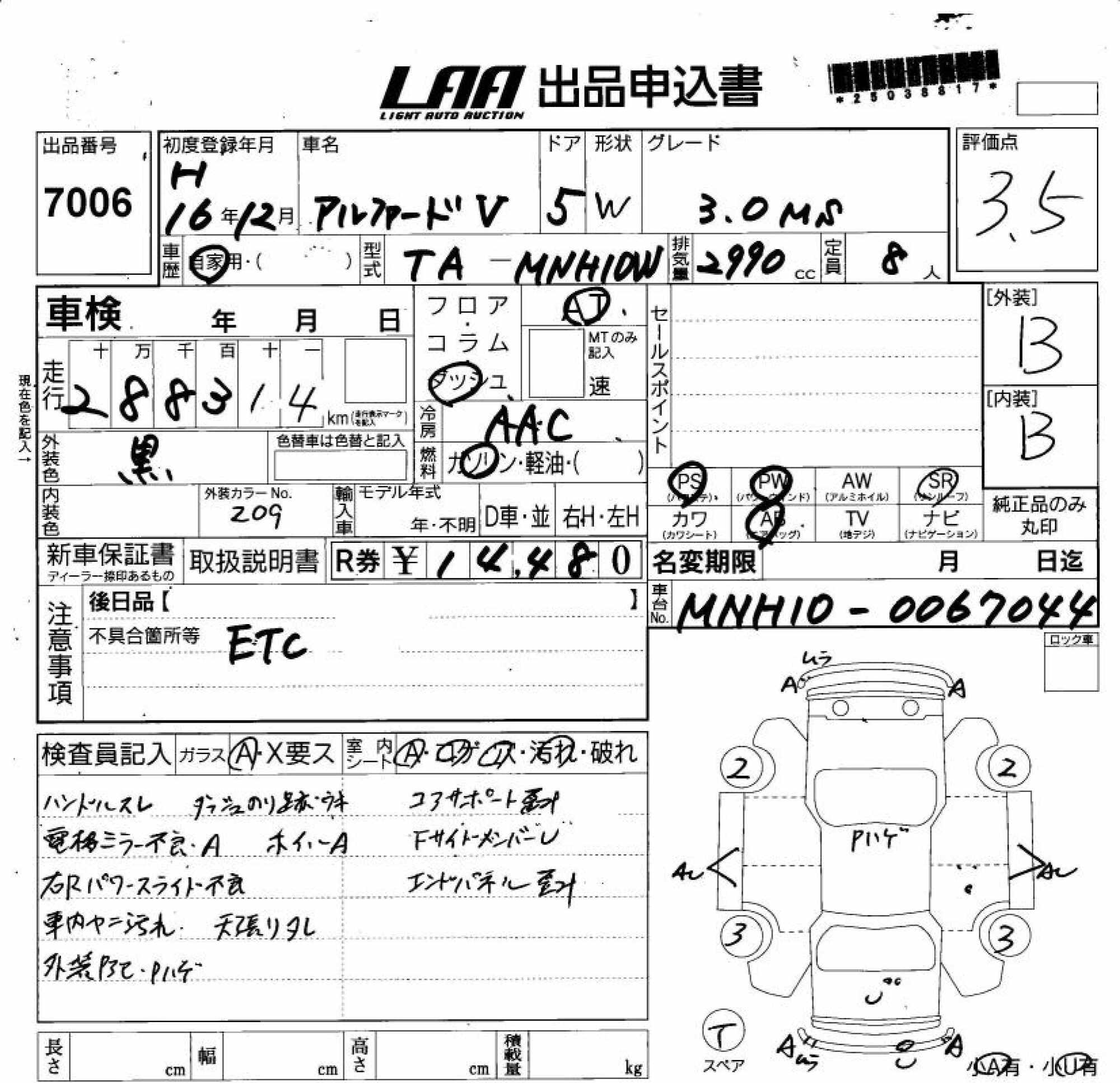 TOYOTA ALPHARD V - лот 7006