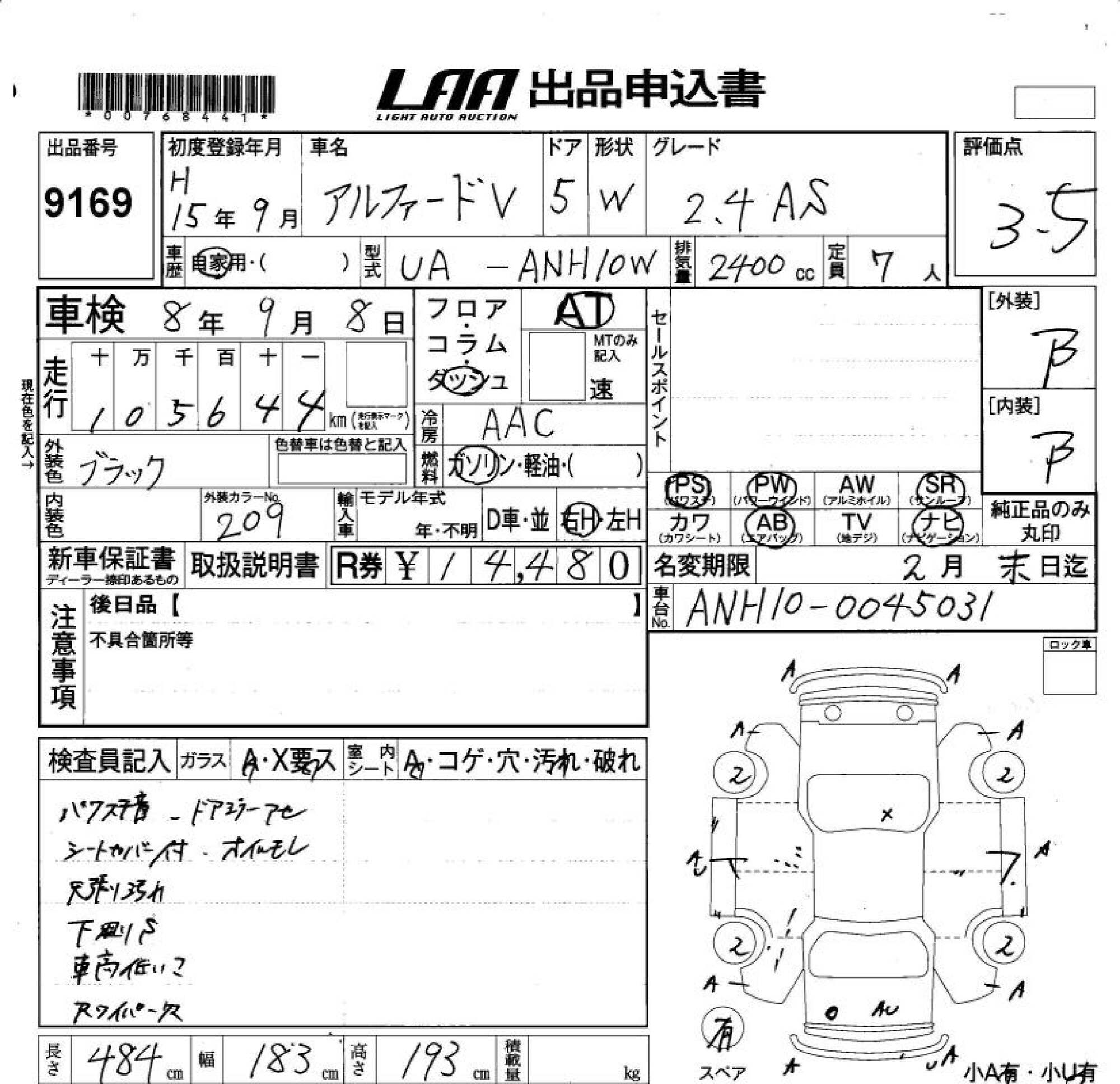 TOYOTA ALPHARD V - лот 9169