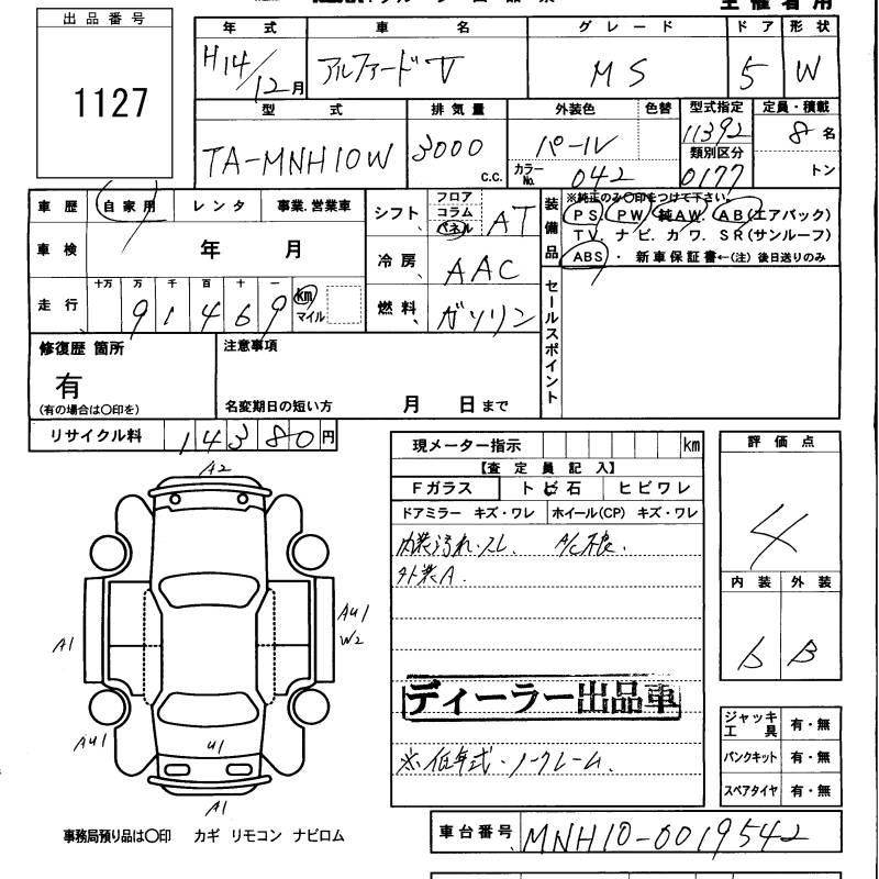 TOYOTA ALPHARD V - лот 1127