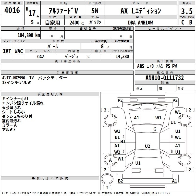 TOYOTA ALPHARD V - лот 4016
