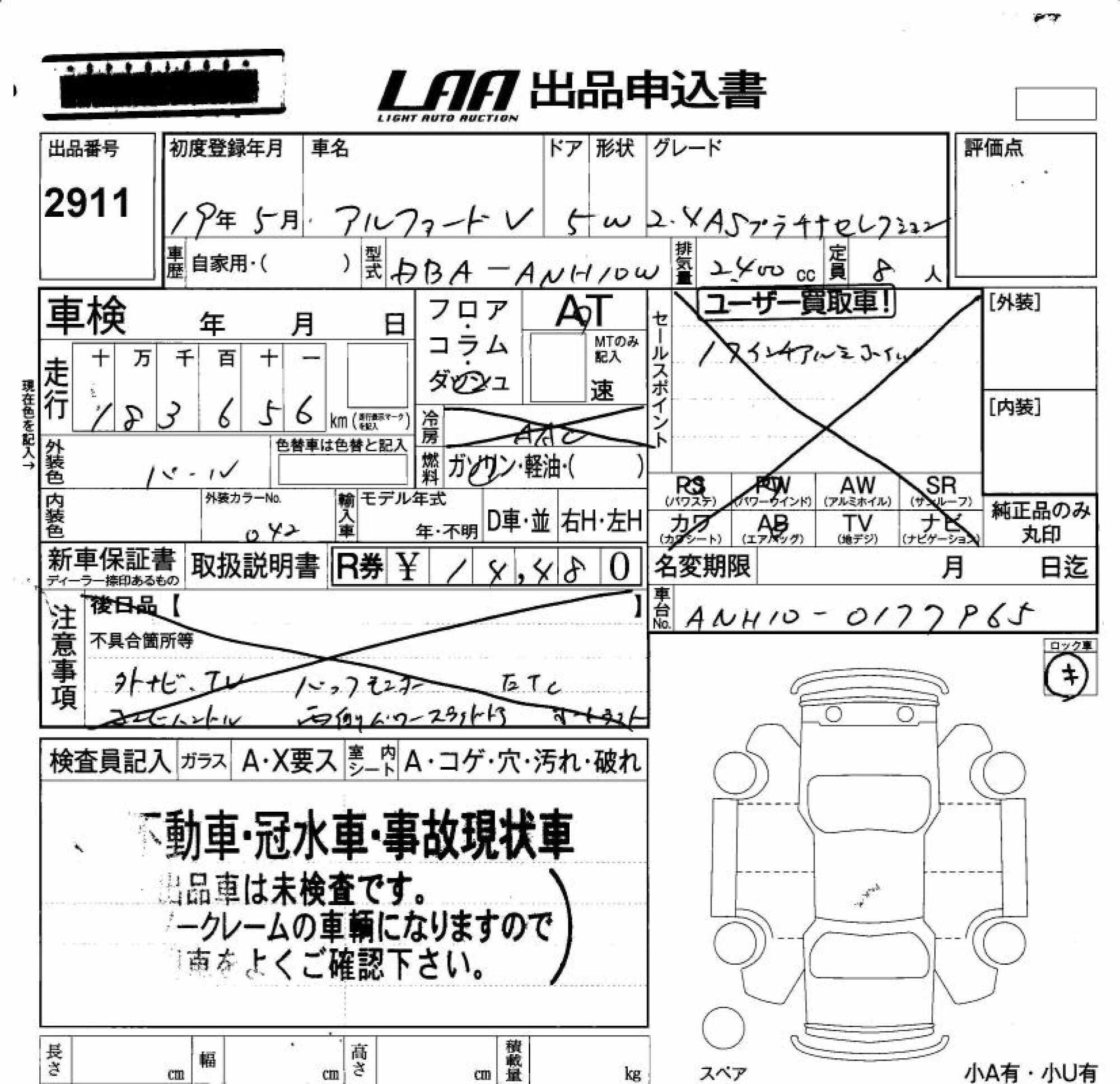 TOYOTA ALPHARD V - лот 2911