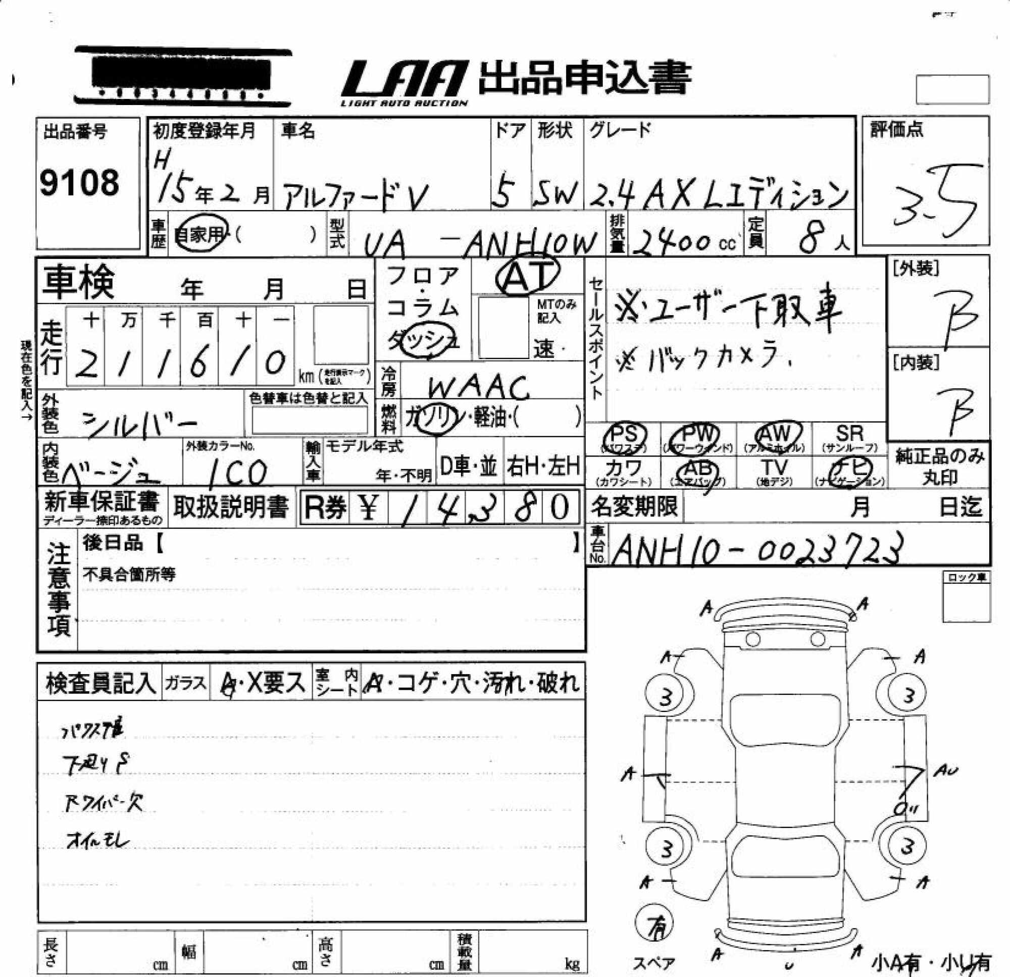 TOYOTA ALPHARD V - лот 9108