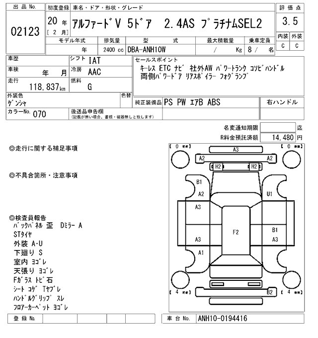 TOYOTA ALPHARD V - лот 2123
