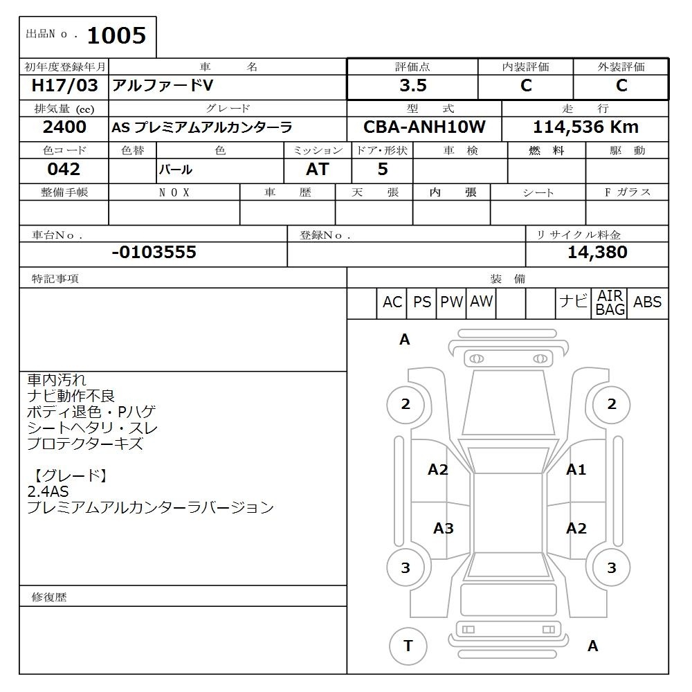 TOYOTA ALPHARD V - лот 1005