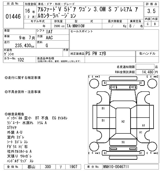 TOYOTA ALPHARD V - лот 1446