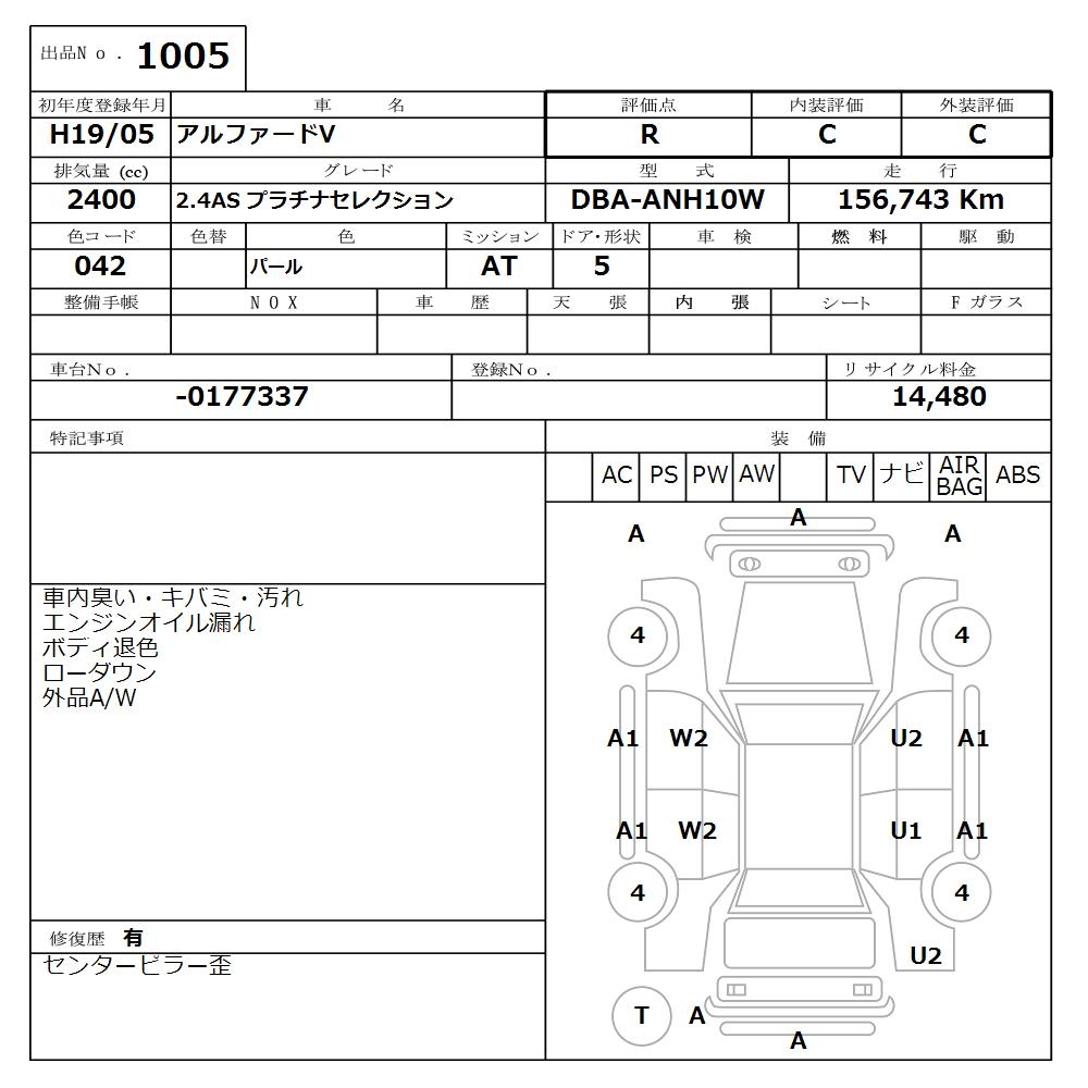 TOYOTA ALPHARD V - лот 1005