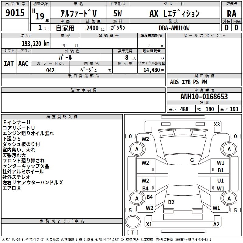 TOYOTA ALPHARD V - лот 9015