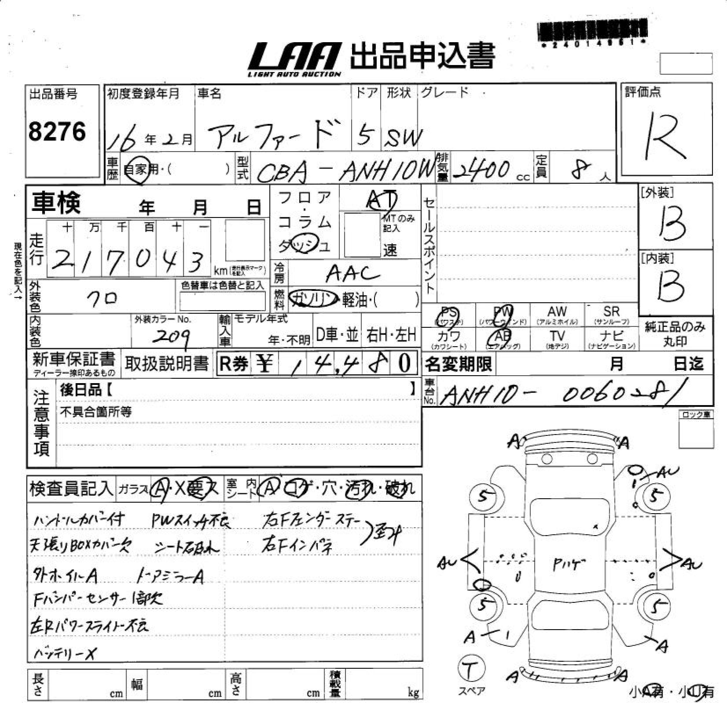 TOYOTA ALPHARD V - лот 8276
