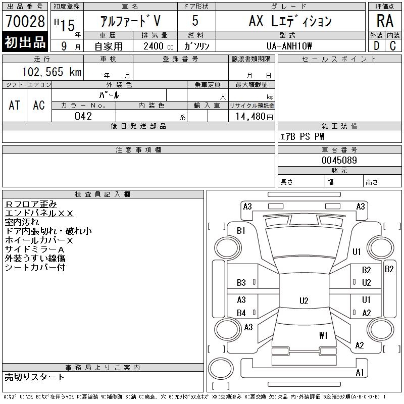 TOYOTA ALPHARD V - лот 70028