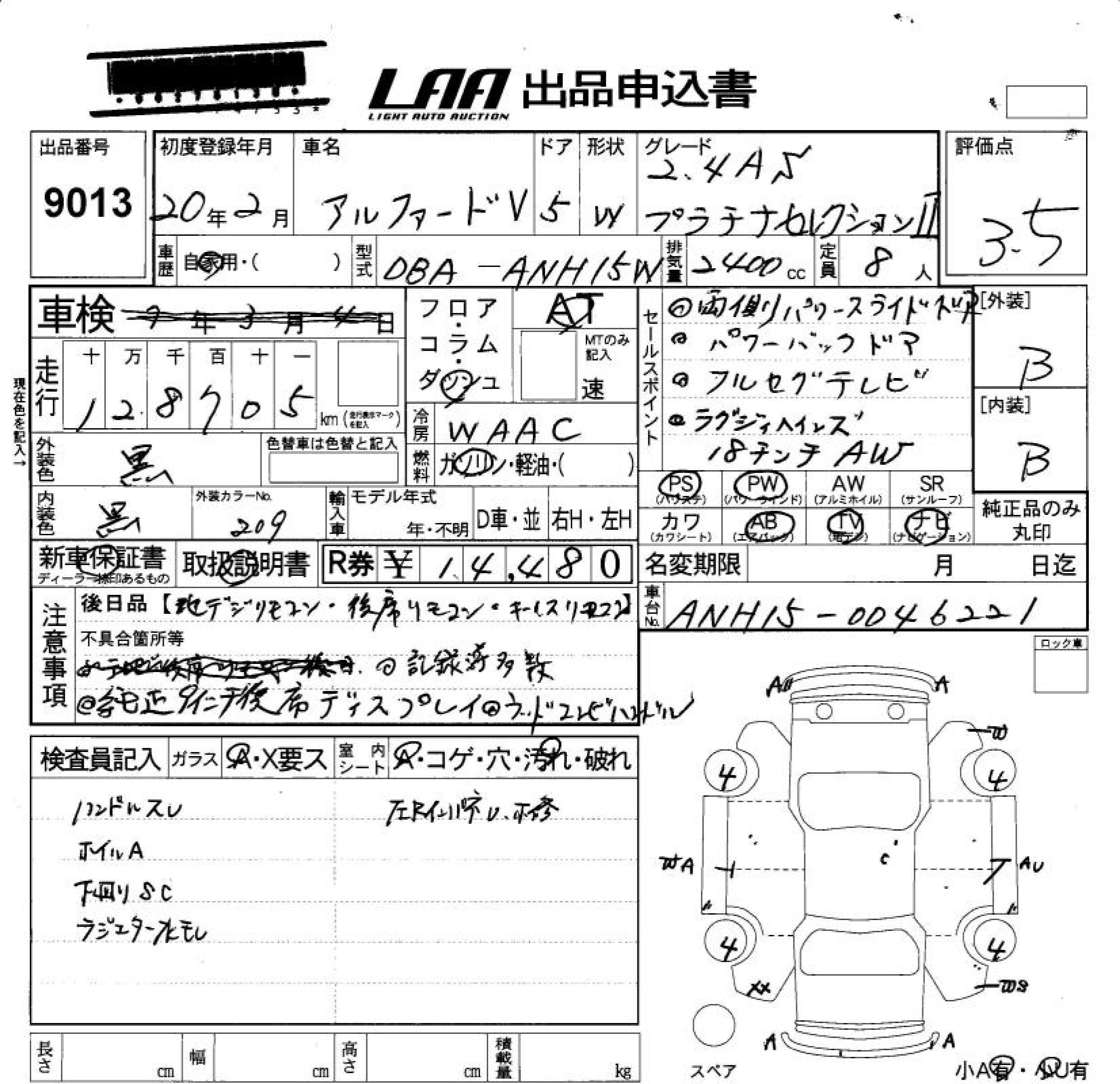 TOYOTA ALPHARD V - лот 9013