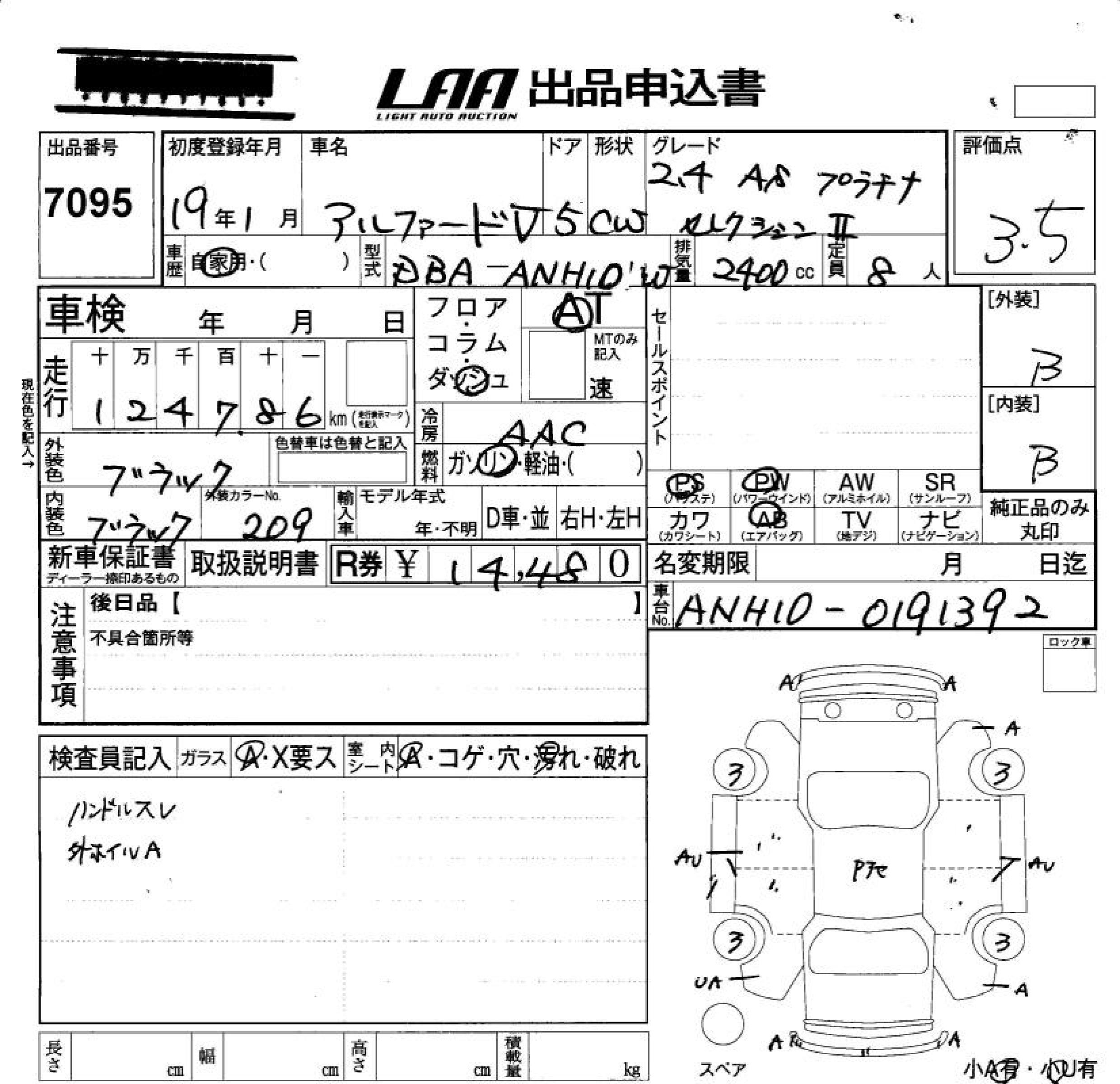 TOYOTA ALPHARD V - лот 7095