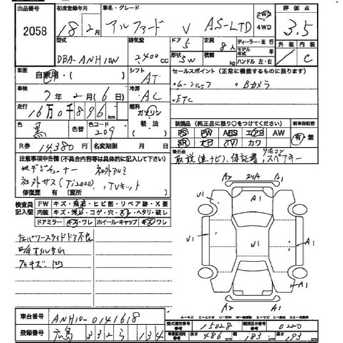 TOYOTA ALPHARD V - лот 2058
