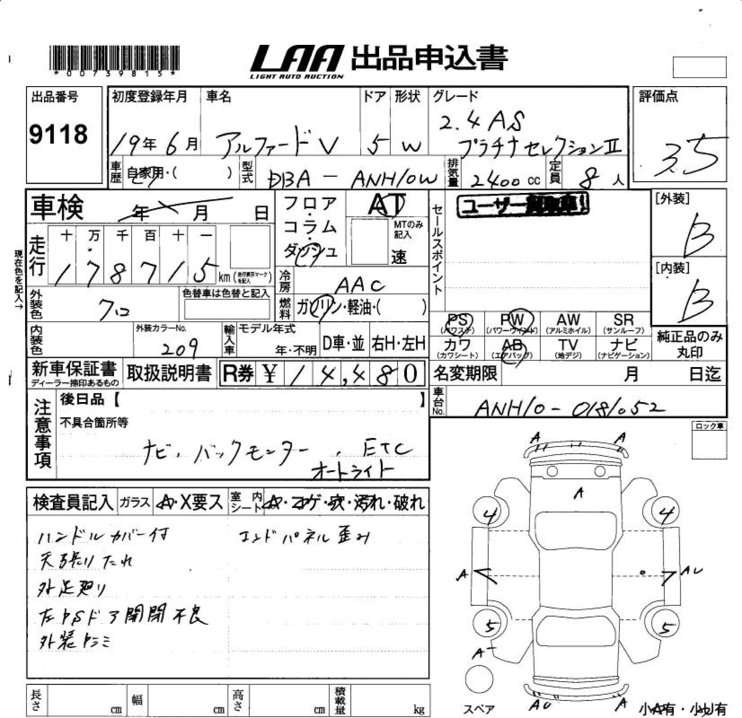 TOYOTA ALPHARD V - лот 9118
