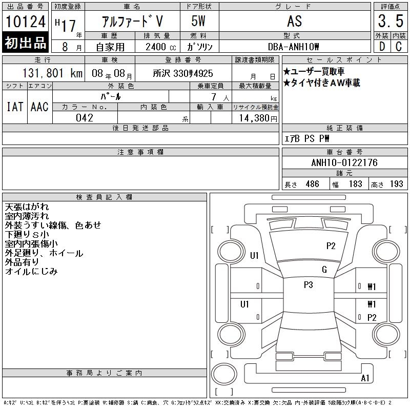TOYOTA ALPHARD V - лот 10124