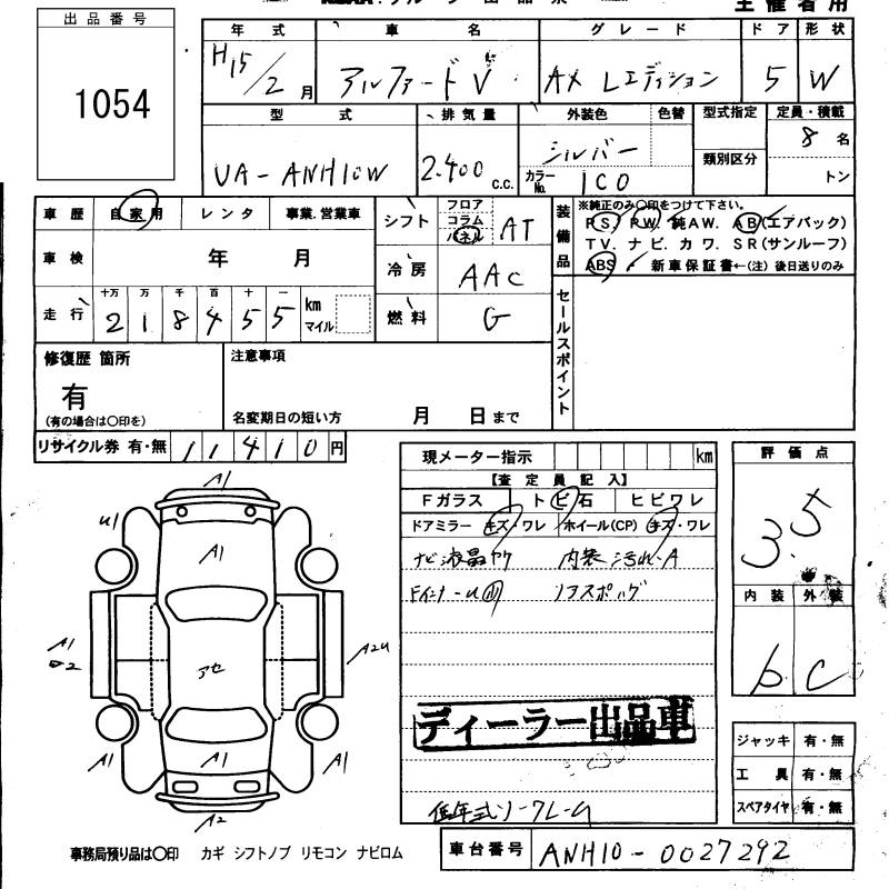 TOYOTA ALPHARD V - лот 1054