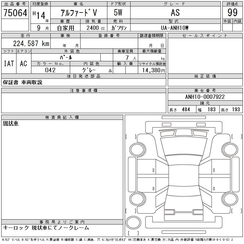 TOYOTA ALPHARD V - лот 75064