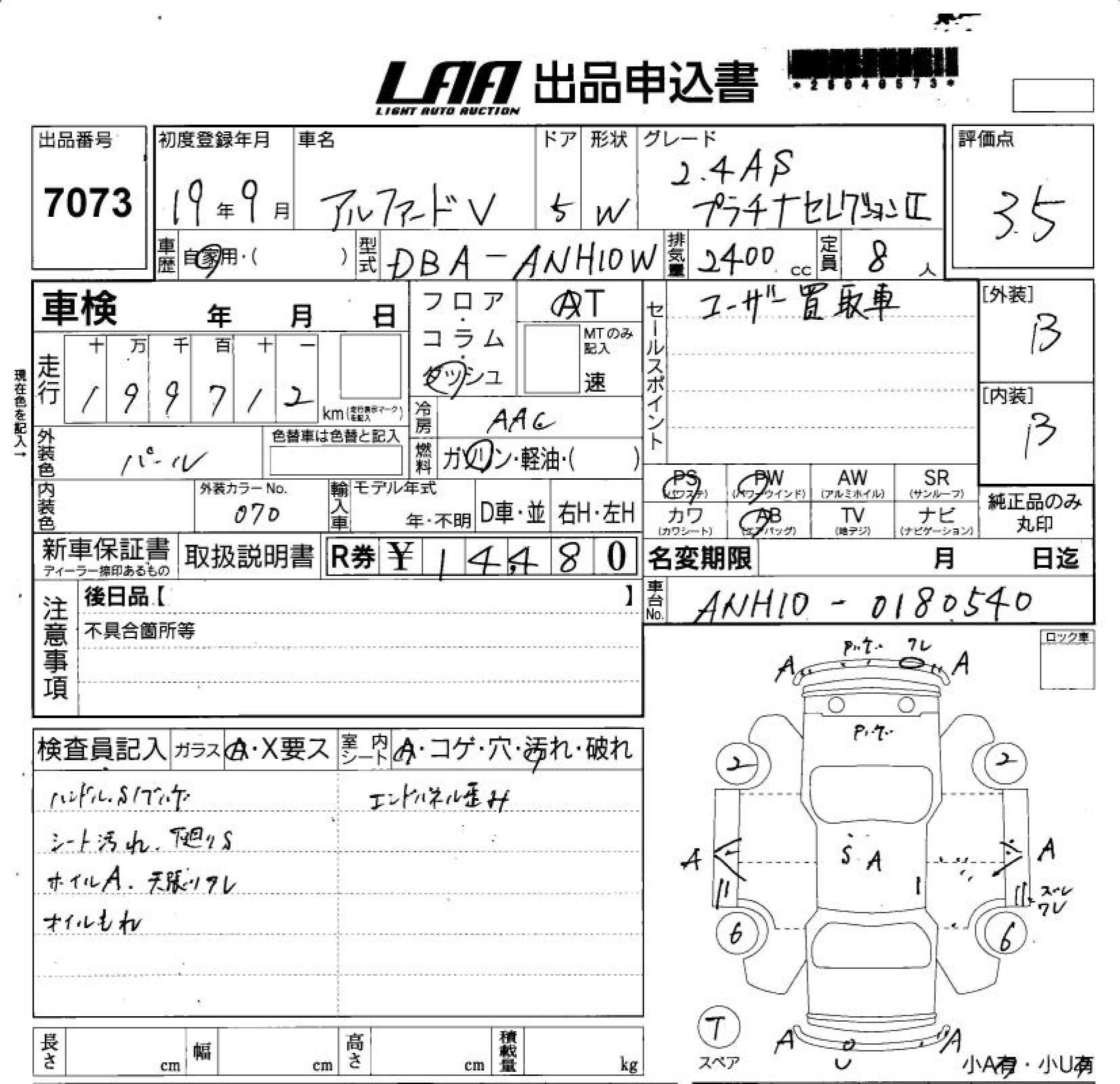 TOYOTA ALPHARD V - лот 7073