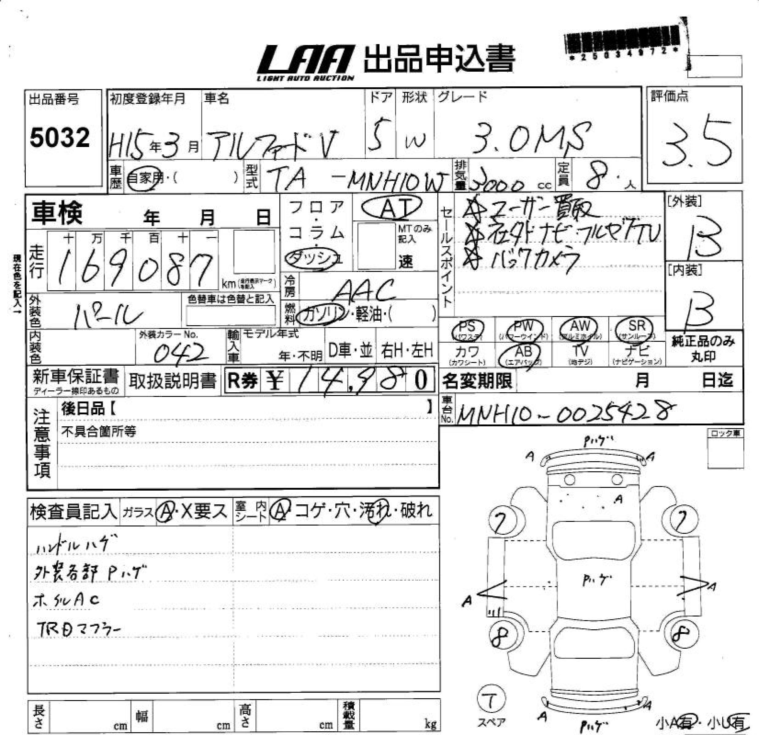 TOYOTA ALPHARD V - лот 5032