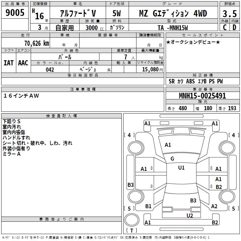 TOYOTA ALPHARD V - лот 9005