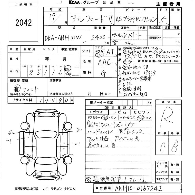TOYOTA ALPHARD V - лот 2042