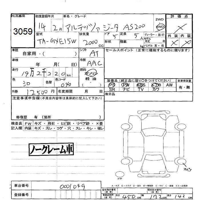 TOYOTA ALTEZZA GITA 4WD AS200 - лот 3059
