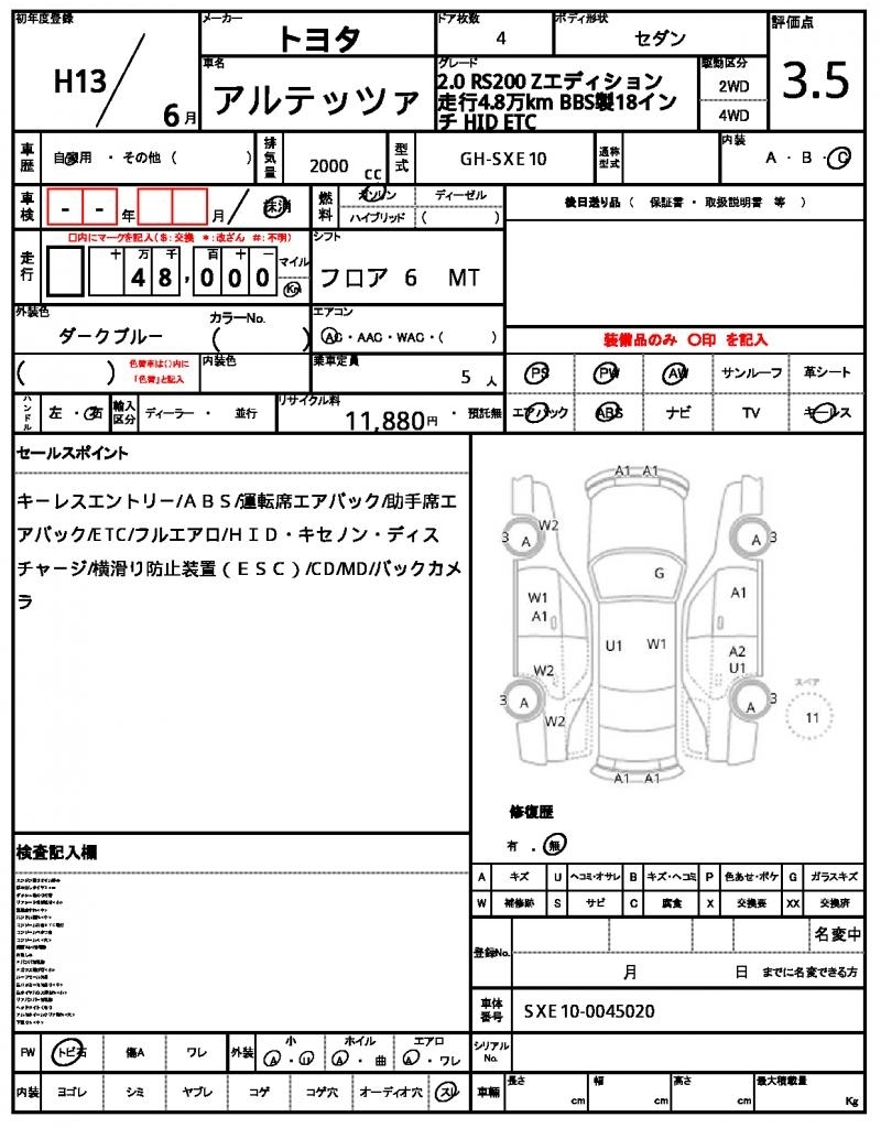 TOYOTA ALTEZZA - лот 5262
