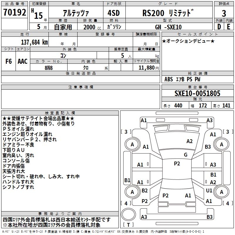 TOYOTA ALTEZZA RS200 LIMITED - лот 70192