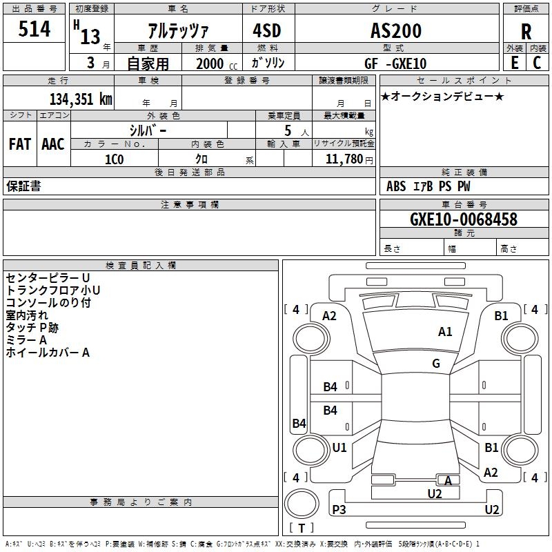 TOYOTA ALTEZZA AS200 - лот 514