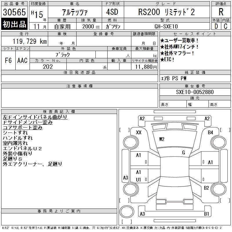 TOYOTA ALTEZZA RS200 LIMITED 2 - лот 30565