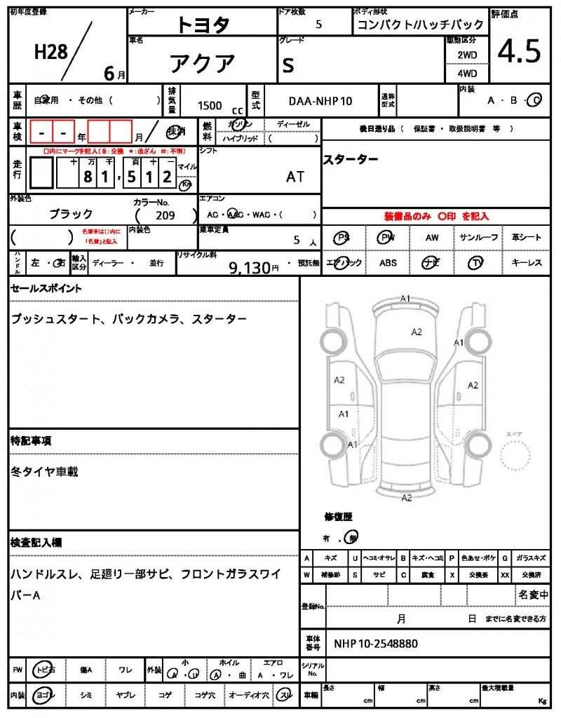 TOYOTA AQUA - лот 58106