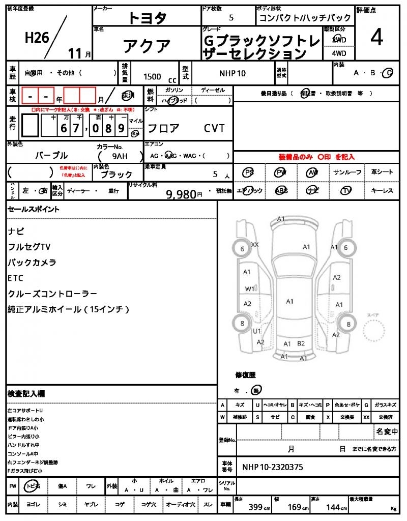 Все аукционы TOYOTA AQUA