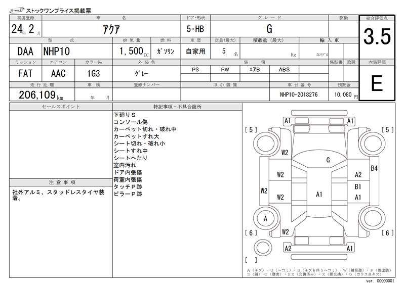 TOYOTA AQUA - лот 14096