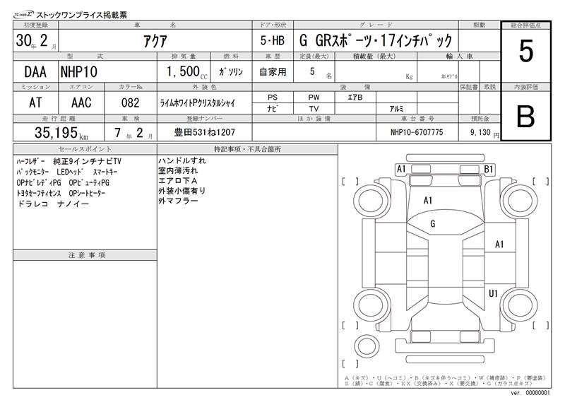 TOYOTA AQUA - лот 20026