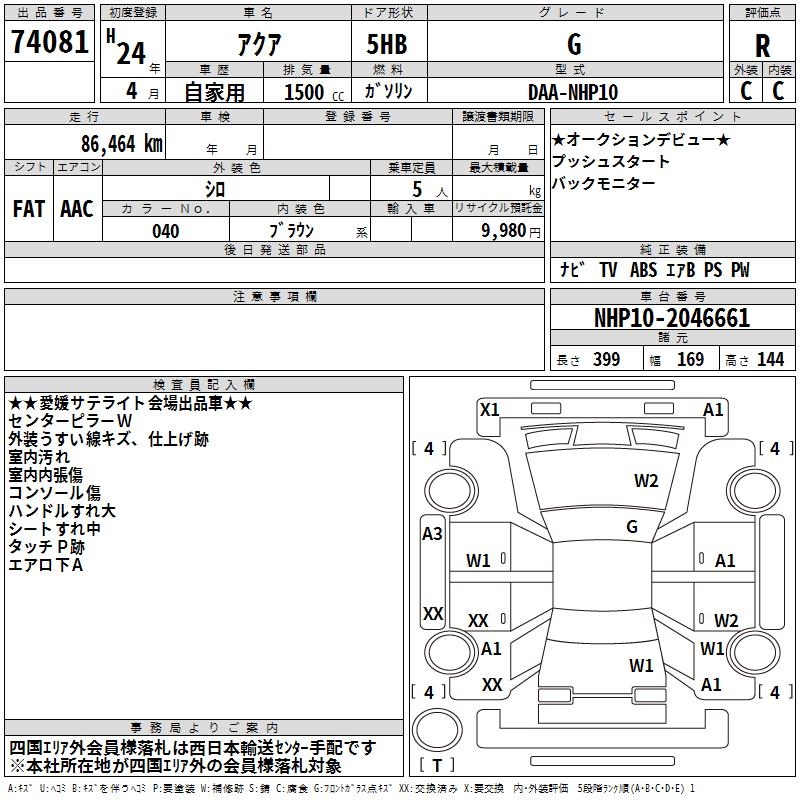 TOYOTA AQUA - лот 74081