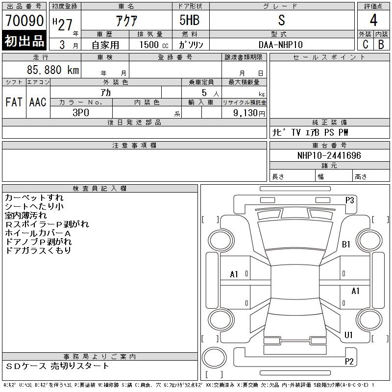 TOYOTA AQUA - лот 70090